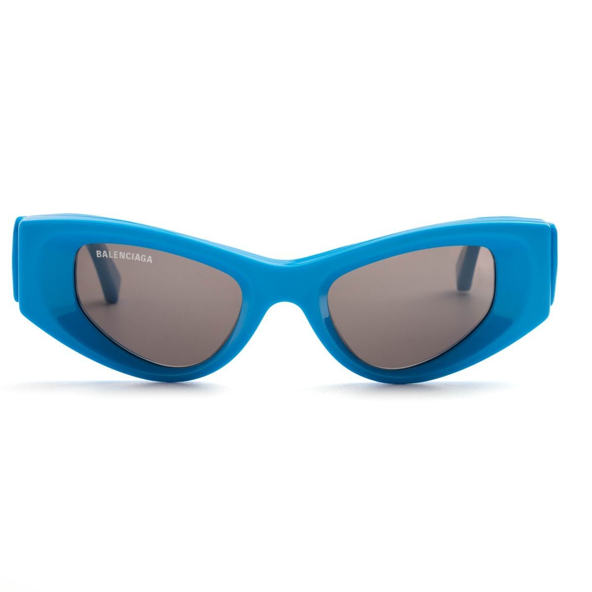 These Balenciaga cat-eye sunglasses feature a full rim frame, grey tinted lenses and a logo print at the arm. These sunglasses have straight arms and curved tips, and come with a protective case.